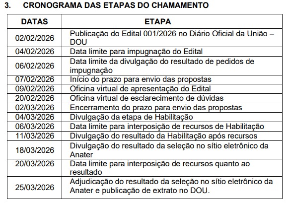 Confira abaixo as etapas do edital: