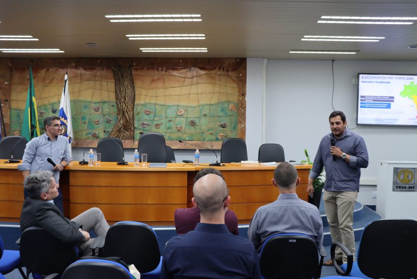 A Associação Brasileira da Construção Industrializada de Concreto (Abcic) realizou, na quinta-feira (28), um encontro regional no Plenário do Crea-MT, em Cuiabá. O evento teve como objetivo apresentar as principais tendências e aplicações da pré-fabricação em concreto, destacando seus benefícios para a modernização da construção civil, como ganho de produtividade, sustentabilidade e qualidade nas obras.