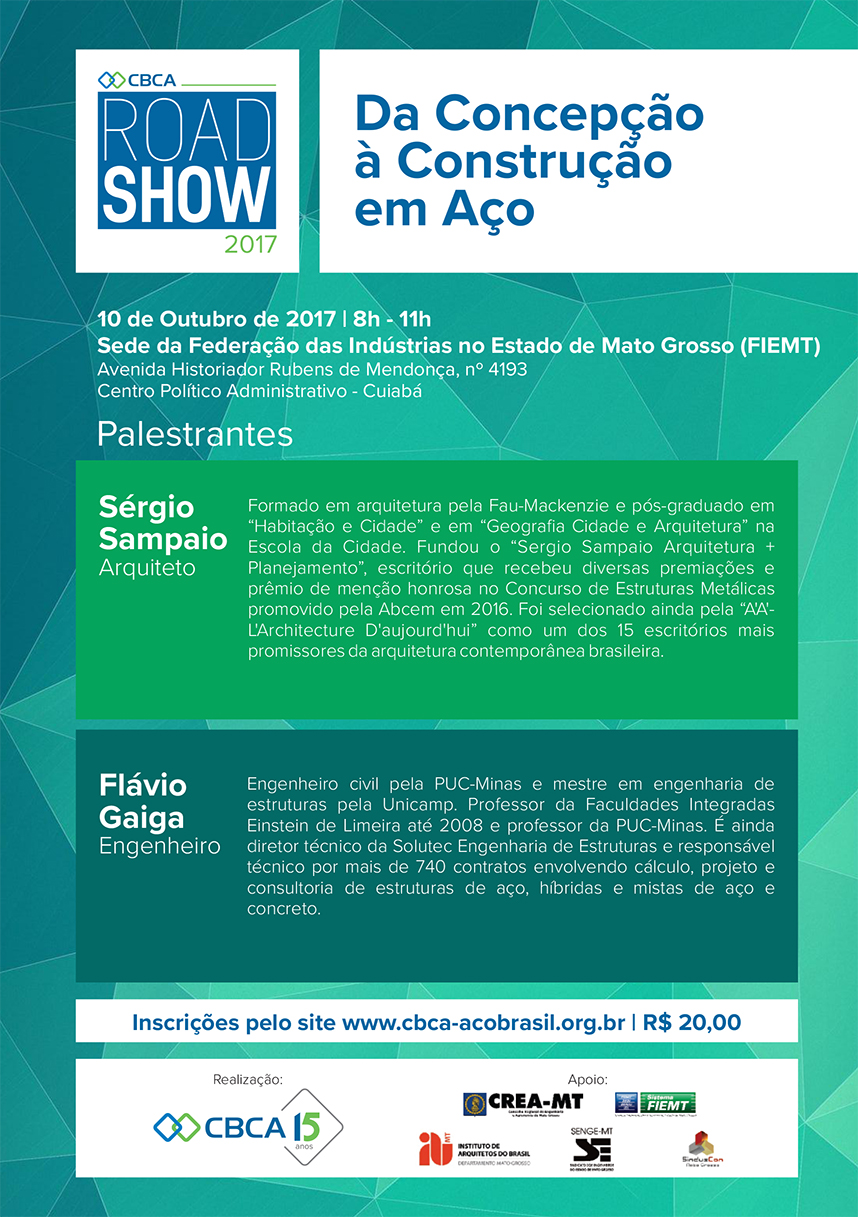 Projeto iniciado pelo CBCA em 2005 já conta com 181 edições em diversas cidades brasileiras O Centro Brasileiro da Construção em Aço (CBCA) confirmou o local do seu 9º RoadShow de 2017. Com o tema “Da Concepção à Construção em Aço”, o event ...