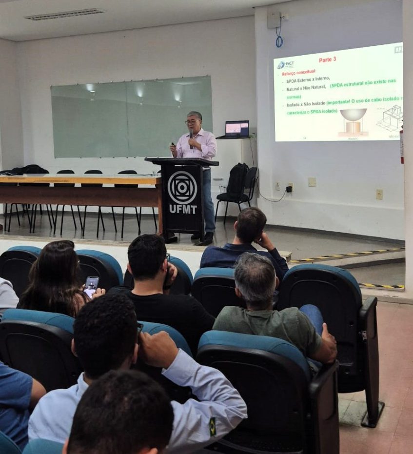O Conselho Regional de Engenharia e Agronomia de Mato Grosso (Crea-MT) marcou presença no Simpósio de Raios, realizado no dia 11 de abril, no Auditório João Barbuíno Curvo Neto (FAET/Mofão) da Universidade Federal de Mato Grosso (UFMT). Promovido pela Associação Brasileira de Engenheiros Eletricistas de Mato Grosso (ABEE-MT), o evento reuniu profissionais e estudantes para discutir temas atuais relacionados à proteção contra descargas atmosféricas (SPDA), com destaque para as atualizações da norma NBR 5419, comparando as versões de 2015 e 2026 .