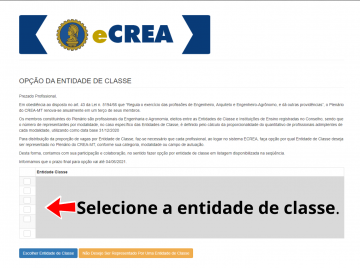 A Comissão de Renovação do Terço (CRT) do Conselho Regional de Engenharia e Agronomia de Mato Grosso (Crea-MT), comunica que o profissional filiado a mais de uma Entidade de Classe deverá formalizar junto ao Crea-MT opção pela entidade na qual deseja ser representado, até o dia 04 de junho de 2021. Para estabelecer junto a entidade de classe, acessar o sistema eCrea.